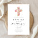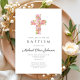 Elegant Religious Floral Pink Cross Baptism Invitation