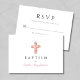 Elegant Religious Floral Pink Cross Girl Baptism RSVP Card