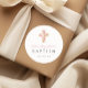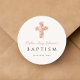Elegant Religious Pink Floral Cross Baptism Classic Round Sticker