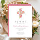 Elegant Religious Pink Floral Cross Baptism Invitation
