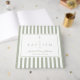 Elegant Religious Sage Green Stripes Baptism Foil Guest Book