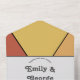 This modern wedding invitation is perfect for the couple that wants to make a stylish statement. The invitation features bold retro calligraphy on a white rectangle with a vibrant and groovy abstract geometric background. The artistic combination of old and new gives any event an inviting and unique touch. Whether you’re planning a simple gathering or a big celebration, this invitation will make sure your guests know it’s an occasion to remember.