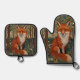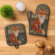 Elegant retro boho red fox woodland animal oven mitt & pot holder set