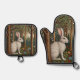 Elegant retro boho white rabbit woodland floral oven mitt & pot holder set