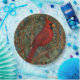 Elegant Retro Cardinal Art Nouveau red bird in a woodland landscape - customisable