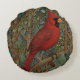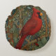 Elegant Retro Cardinal Art Nouveau red bird Round Cushion