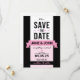 Elegant retro style save the date card with black-white and pink design. Personalise this announcement by adding your own custom details.