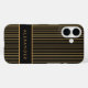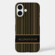 This cellphone casing features a sleek and elegant design with vertical gold stripes on a black background, giving it a refined and luxurious appearance. A horizontal black band across the centre showcases the owners name in bold, gold uppercase letters, adding a personalised and premium touch. The overall aesthetic is modern, sophisticated, and stylish, ideal for someone who values both fashion and function.