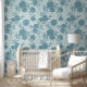 Elegant Retro Viburnum Floral Pattern Powder Blue Wallpaper