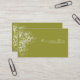 Elegant Retro White Flower Swirls Olive Green Business Card