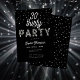 A simple, modern, elegant and chic 30th birthday party invitation template featuring a black background, the word PARTY covered in rhinestones (simulated, not real stones, this is a digital effect), modern calligraphy script and typography in white. A chic, timeless design for a woman on her thirtieth birthday.