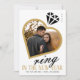 Celebrate your engagement with this stylish and modern announcement christmas card! Featuring a white and gold colour scheme, a chic diamond ring symbol, and your beautiful engagement photo in a golden heart, this card is the perfect way to share your exciting news with family and friends.