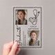 Announce your Registered Nurse graduation in timeless, elegant style with this RN 2026 photo announcement. Designed with a refined black-on-clear aesthetic, this layout features two photos, modern vertical script typography, and minimalist stethoscope and heart line art for a meaningful medical-inspired touch.