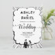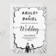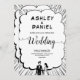 This elegant black-and-white comic book-style wedding invitation is perfect for a modern wedding. The simple design features elegant black calligraphy and a bride and groom illustration on a comic book-themed background. The invitation card includes the wedding details on the back instead of paying for a separate enclosure card.