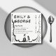 This elegant black-and-white comic book-style napkin is perfect for a modern wedding. The simple design features elegant black calligraphy and a bride and groom illustration on a comic book-themed background.