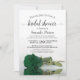 This beautiful bridal shower invitation features a photo of a single long-stemmed emerald green coloured rose lying on its side reflecting in a pool of water with waves and ripples. The elegant script calligraphy title lends class and style. Includes information on both the shower and gift registry. Perfect way to celebrate the bride to be.