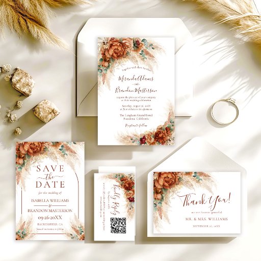 Celebrate your love story with the warm, earthy beauty of the Elegant Terracotta Romantic Floral Boho QR Code Wedding Invitation. A perfect blend of modern functionality and timeless bohemian romance. Designed with rich terracotta tones and delicate romantic florals, this invitation captures the essence of today’s most sought-after wedding trends: boho elegance, natural textures, and warm sunset-inspired color palettes. The refined typography keeps the layout sophisticated, while the floral details add softness and movement for a truly elevated look. The integrated QR code offers seamless convenience for your guests. With a simple scan, they can access your wedding website, RSVP page, travel details, registry information, or event schedule — combining classic printed elegance with modern digital ease. Perfect for: Boho weddings, Rustic and barn venues, Desert and outdoor ceremonies, Fall and summer celebrations, Romantic garden weddings. Fully customizable with your names, date, venue details, and personal QR link, this invitation sets the tone for a stylish, heartfelt celebration your guests will never forget. Warm. Romantic. Effortlessly modern.