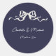 Elegant Romantic Navy Ribbon Wedding Classic Round Sticker