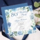 Elegant Rose Blue Floral Frame 80th Birthday Party Invitation