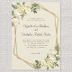 Elegant Wedding Invitation features romantic wedding roses in watercolor vanilla white with hints of blush pink displayed in leafy greenery on an eggshell background. A chic sparkling golden colour geometric crystal-shaped frame completes the trendy design while traditional, classic wording provides timeless sophistication. Personalise wedding design with your details in elegant charcoal grey lettering and script. The back of the card is an elegant eggshell. Feel free to contact me at invitationsuites@gmail.com if you have questions regarding this or any of our designs.