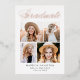 Elegant graduation announcement featuring "Graduate" displayed at the top in a rose gold foil calligraphy script. The design features four photos of the graduate displayed in a collage-style layout with the graduate's name, school name, and graduation year shown below. The 4 photo graduation announcement reverses to display optional text such as future plans, graduation party details, etc. The chic graduation announcement is perfect for announcing the graduation of both high school and college graduates.