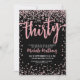 Introducing a chic and celebratory 30th birthday party invitation, perfect for marking this special milestone in style. The elegant design features a mix of silver glitter confetti, adding a touch of fun and festivity. At the top, "Thirty" is prominently displayed in bold calligraphy, setting the tone for an unforgettable celebration. The text combines script and simple modern fonts in white, creating a striking contrast against the vibrant pink background. The glitter continues on the back, adding an extra touch of sparkle to the overall design. This invitation is perfect for celebrating 30 years of life with flair. The background and font colours can be customised to fit your style. Elegant Rose Gold Glitter 30th Birthday Party Invitation Pink And Black Confetti Thirty Years Old. Please note the glitter is faux, with no foil or shimmer.