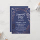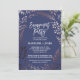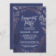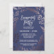 This elegant rose gold and navy engagement party invitation card is perfect for a classy event. The design features a stunning blush pink leafy frame on a dark blue background and is paired with a dazzling cursive font.