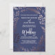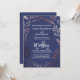 This elegant rose gold and navy leafy frame wedding invitation card is perfect for a classy wedding. The design features a stunning blush pink leafy frame on a dark blue background and is paired with a dazzling cursive font.