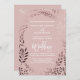 This elegant rose gold and pink leafy frame wedding invitation card is perfect for a classy wedding. The design features a stunning faux rose gold foil leafy frame on a blush pink background and is paired with a dazzling cursive font.