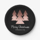 Elegant rose gold & black Merry Christmas tree Paper Plate
