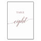 This elegant rose gold calligraphy table eight table number is perfect for a simple wedding. The neutral design features a minimalist card decorated with romantic and whimsical faux rose gold foil typography. The card prints on the front and back (double-sided). Other table numbers in the collection are sold separately.