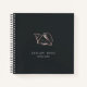Chic personalized spiral notebook for your salon or hairstyling business features two lines of custom text in classic white lettering, on a rich soft black background adorned with a tropical conch shell illustration in faux rose gold foil. Personalize with your name or salon name, or your choice of custom text. Ideal for island or beach-based businesses.