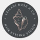 Label your business correspondence or products with these chic stickers that match our Conch Shell logo branding suite for hairstylists, salons or any beach-based or island business. Rich soft black stickers feature a faux rose gold foil conch seashell illustration in the center, with two text fields curving around the outside, in classic white lettering.