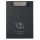 Island chic personalized clipboard features two lines of custom text in classic white lettering, on a rich soft black background adorned with a tropical conch shell illustration in faux rose gold foil. Design repeats on reverse side. Add your name or business name to this elegant clipboard with a modern beach vibe.