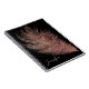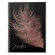 Modern chic and elegant notebook features rose gold feather and a name written in white handwritten lettering.