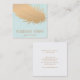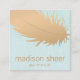 Elegant Rose Gold Feather Turquoise Blue Linen Square Business Card