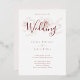 An elegant wedding invitation featuring rose gold foil floral illustrations with burgundy text. This lovely invitation has a white background on the front and a light pink, statement, background on the back. Simply customise this invitation, add it to your cart, and have a wonderful wedding celebration.