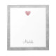 This elegant note pad makes jotting down important information a bit more fun! Add your own special touch to this chic design featuring a rose gold pink foil heart and silver foil border with silver gray trim.