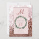 Elegant rose gold bokeh glitter December birthday invitation with holly berry wreath and chic initial. Personalise party information on the reverse side of the card. Chic elegant style.
