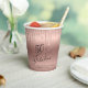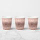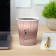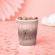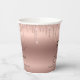 Chic personalised paper cups for her 50th birthday party featuring "50 & Fabulous" in an elegant calligraphy script against a rose gold background with rose gold faux glitter drips.