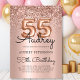 Celebrate in style with this chic Rose Gold Balloon 55th Birthday Invitation. Featuring stunning rose gold foil number balloons, elegant calligraphy, and a shimmering glitter border, this design shines against a luxurious blush pink metallic foil background. The perfect blend of sophistication and fun, ideal for marking this special milestone with a touch of glamour.