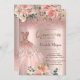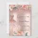 Elegant glitter dress, and roses on rose gold glitter ombre quinceañera party invitation.