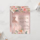 Elegant Rose Gold Glitter Dress Roses Quinceañera Invitation