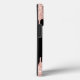 Girly, Elegant, Sylish Blush Rose Gold Glitter Drips 2 Monogram Script custom personalised name monogrammed iphone case. Featuring a modern luxury faux blush pink rose gold glitter dripping frame, a large double hand lettered monogram script font with swashes (large size initials), and a serif type font name in pink on black background. Easy to personalise it. Great feminine girly gift for girlfriend, mother, birthday and for anyone who like pretty glamourous shiny things.
