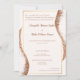 Rose gold glitter swirls around a yellow gold frame on a whisper pale background shade from the deep rose gold fonts used for the text. Inside the double frame is your invitation in the promised deep rose gold contrasting fonts. On the back the whisper pale background repeats. The wording is traditional but easily changed to suit your wedding and personalities.