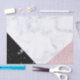 Modern geometric design featuring faux rose gold glitter, white and black marble.