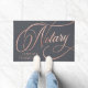 Elegant, trendy door mat for notary loan signing agent featuring faux foil rose gold handwritten calligraphy script ''notary'' on a silver gray background. Personalize with a name.