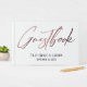 This simple design features an elegant modern handwriting font used to create an image that reads "Guestbook". The graphic was embellished with a faux-metallic rose gold finish. Use the template fields to add your personal details. The background can be changed to any colour you prefer. // 151 //