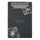 Island chic personalized clipboard features two lines of custom text in classic white lettering, on a soft black background adorned with a tropical hibiscus flower illustration in faux rose gold foil. Design repeats on reverse side. Please note that this clipboard is a mini size; full size version also available in our Hibiscus collection.
