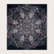 Whimsical, girly rose gold glitter tribal mandala mehndi flower, rose pink, blush and white strokes henna floral, bohemian trendy design, featuring a geometric circle of flowers and feather shapes, lines, stripes, triangles and dots, on a bluish gray color watercolor stains and splatters, and the galaxy nebula, universe, constellation, space, astronomy, nature image. This rose gold faux metallic texture effect design, Aztec, traditional with a modern twist, mystical, decorative, hand drawn, native, ethnic motif illustration, boho chic, dreamy feel artwork, is perfect for everyday wear, home decor, celebrations and special days theme decorations.